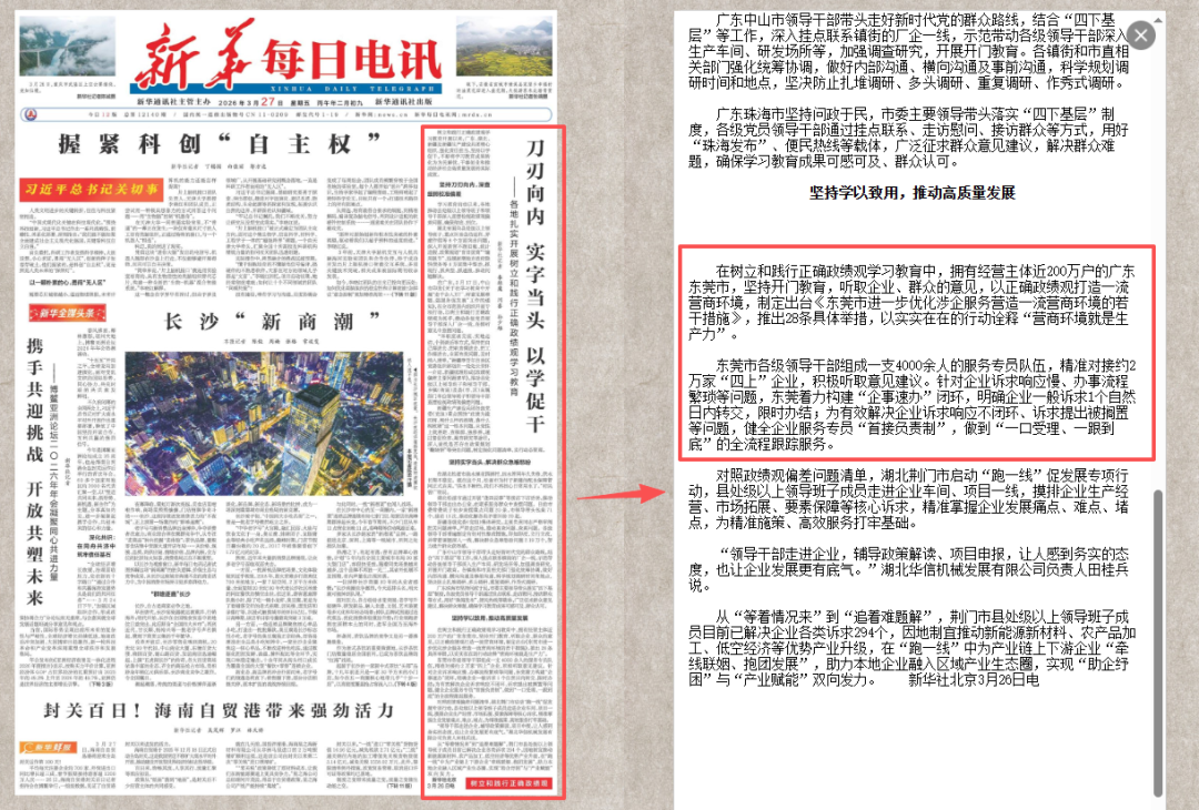 在广东,3月17日,中山市印发《关于在学习教育中开展“走千企入万厂、听意见解难题、强服务促发展”工作的通知》,在全市范围内组织开展专项行动,以树立和践行正确政绩观为抓手,推动各级党员领导干部深入厂企一线,在倾听意见中查摆问题。